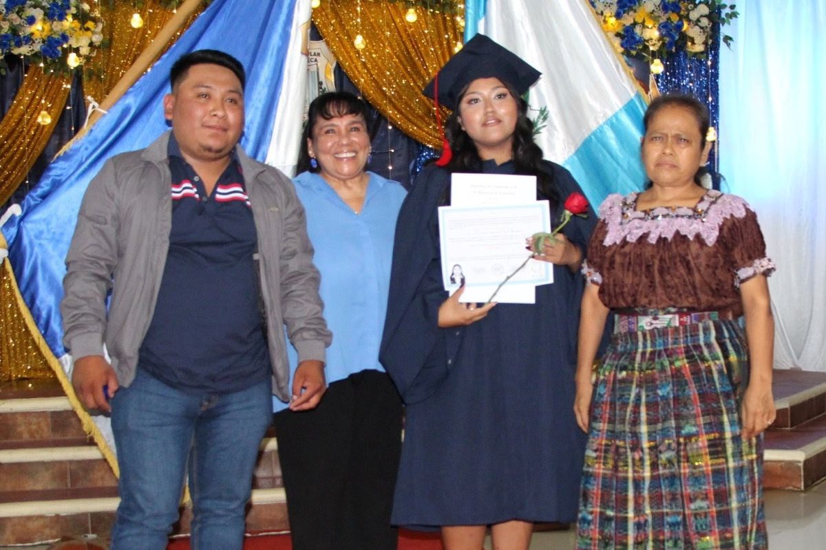 Zwei junge Frauen im Hochland von Guatemala schließen mit Unterstützung unseres Stipendienprogramms ihre Ausbildung ab.